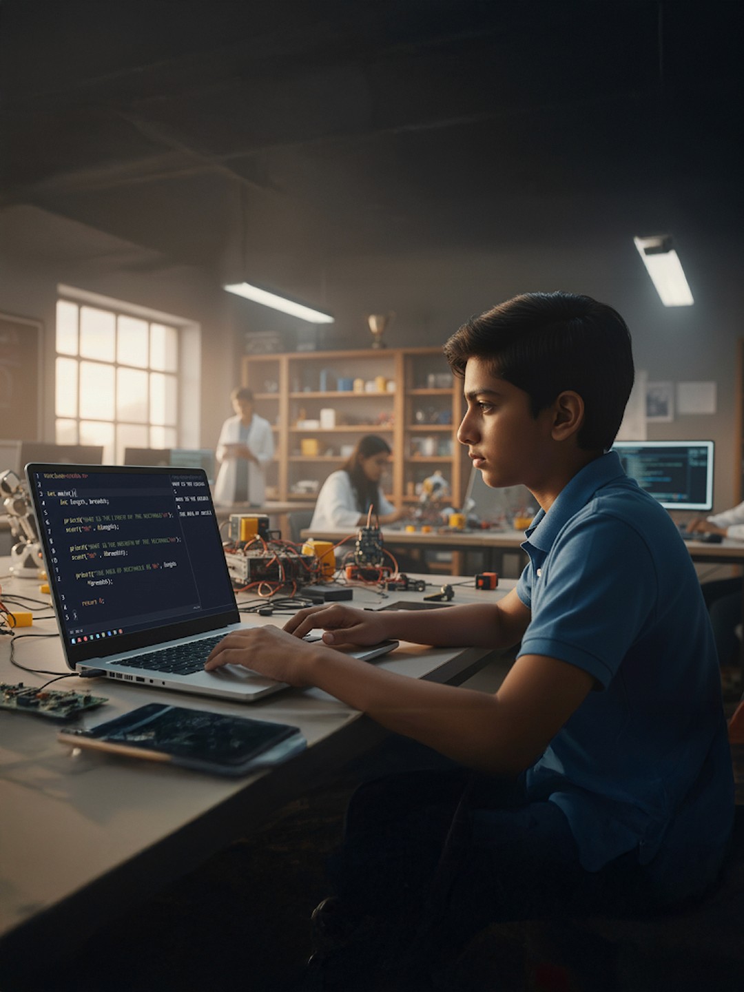Ages 13 - 14 are when curiosity turns into capability. Here, students dive deeper into robotics, coding, electronics, and app development, exploring complex challenges, designing their own systems, and gaining real-world problem-solving, creativity, and leadership skills.