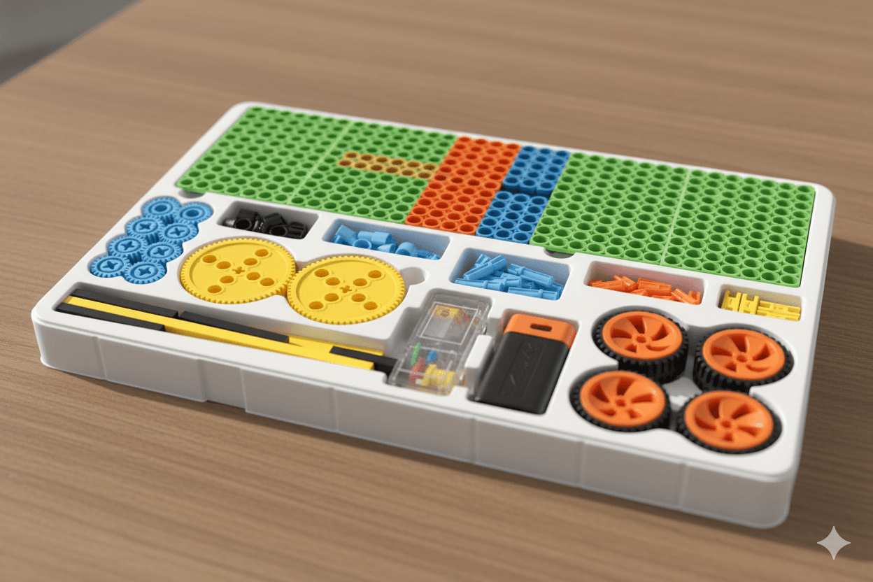 • Build Autonomous Robots – Use chassis, screws, nuts, & electronic components to create self-moving bots.