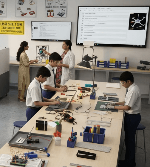 OMOTEC has a wide variety of structured grade-wise curriculum adapted as per NEP for different State, National & International boards (CBSE, ICSE, IGCSE, IB) offering an exciting learning experience in Robotics & Coding.